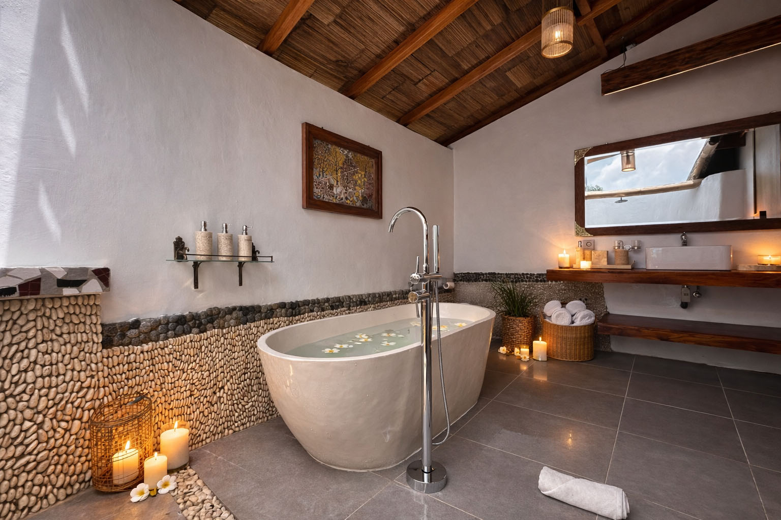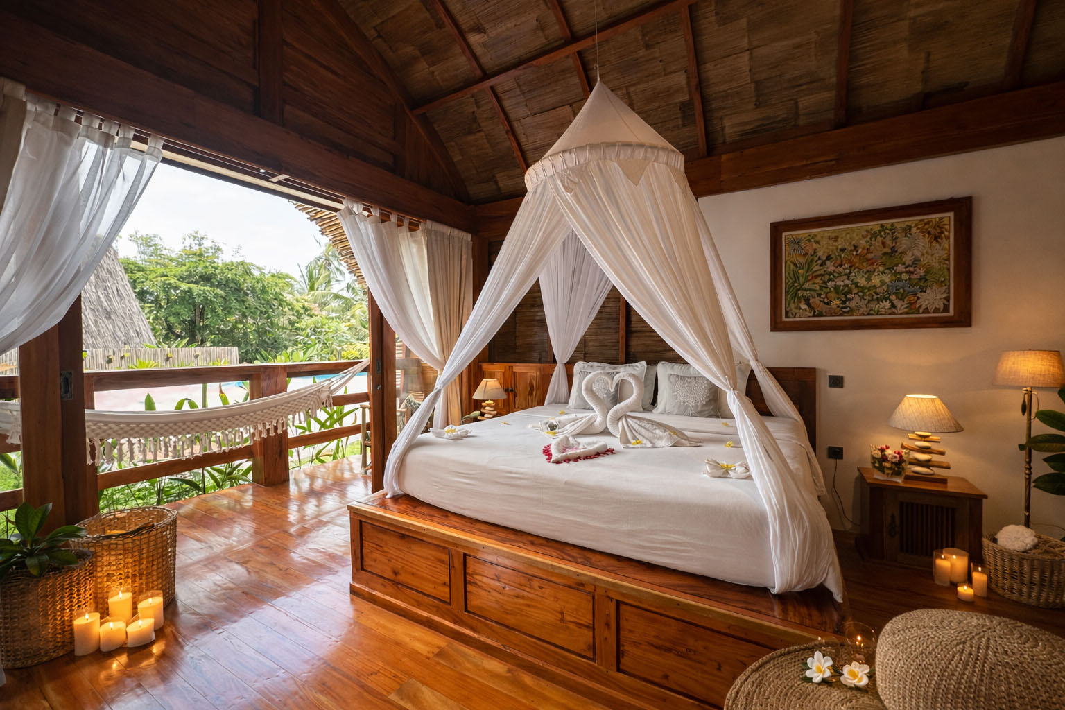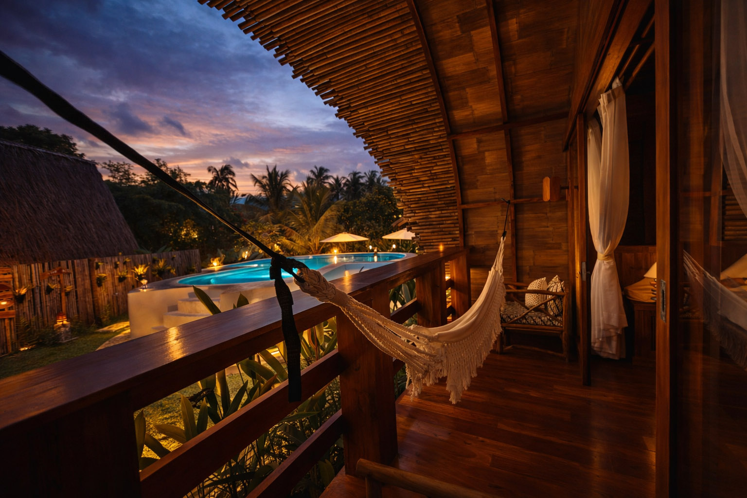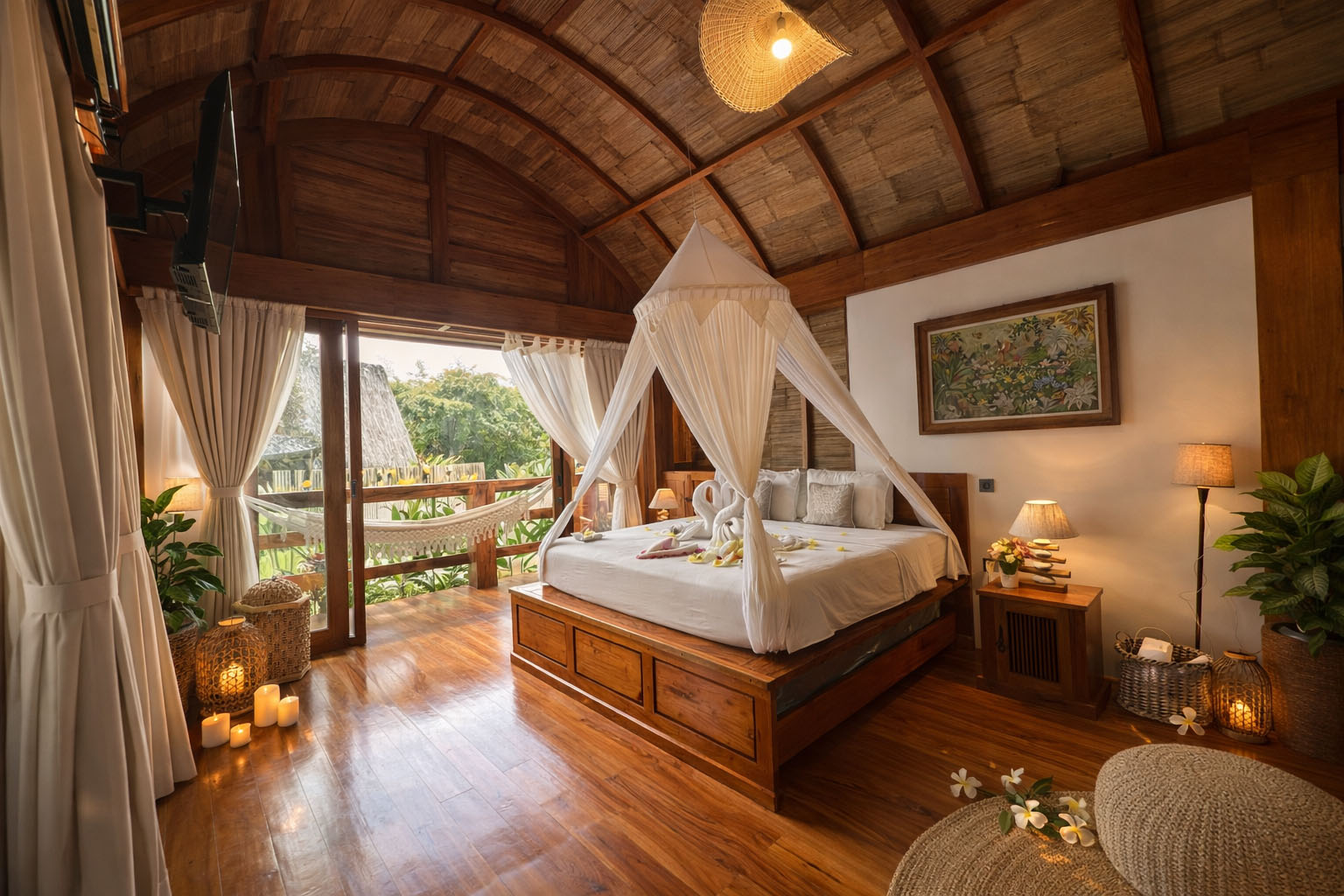 With its open-air concept and adjustable bamboo blinds, guests are fully immersed in nature, accompanied by a gentle freshwater stream and unobstructed views of the sky. As evening falls, enjoy the magical glow of fireflies, and awaken to the soothing sounds of tropical birds greeting the morning—creating an unforgettable stay in Batukaras.