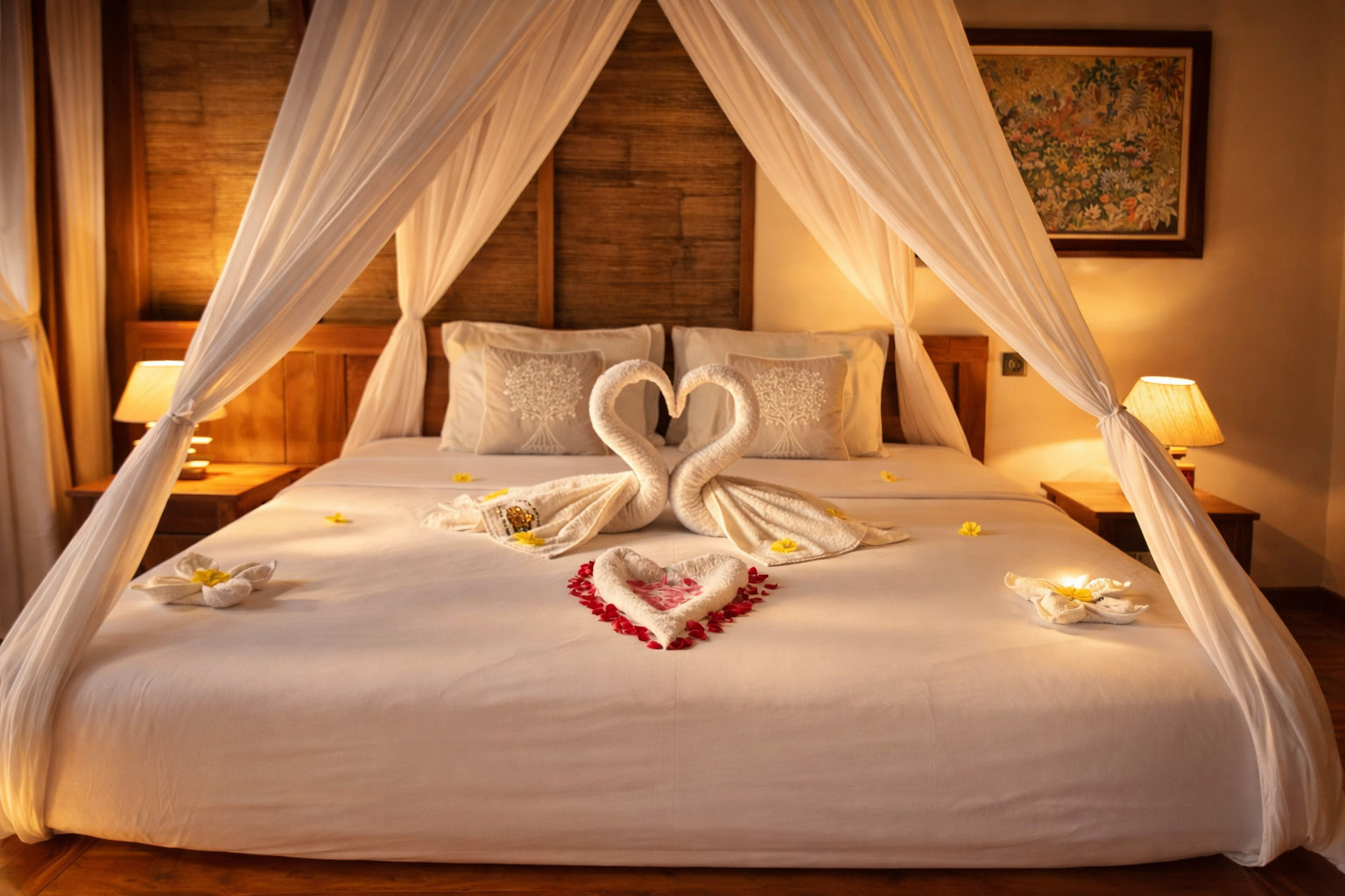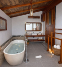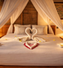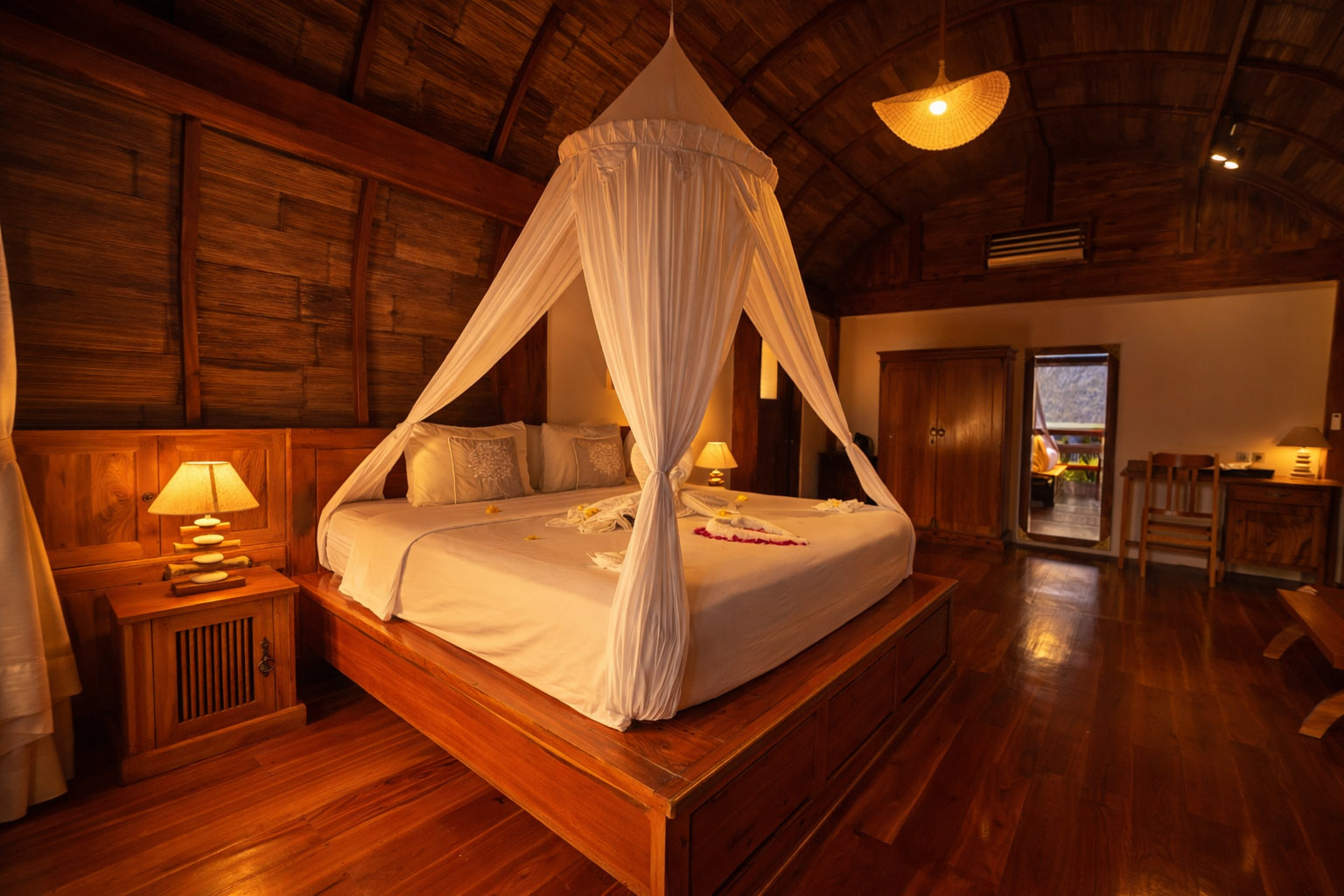 Ideal for couples or solo travelers, the suite accommodates up to two guests and features a comfortable queen-size bed, a private balcony, and a secluded en-suite bathroom located at the rear of the bungalow. Every detail is crafted to provide comfort while maintaining an authentic eco-living experience.