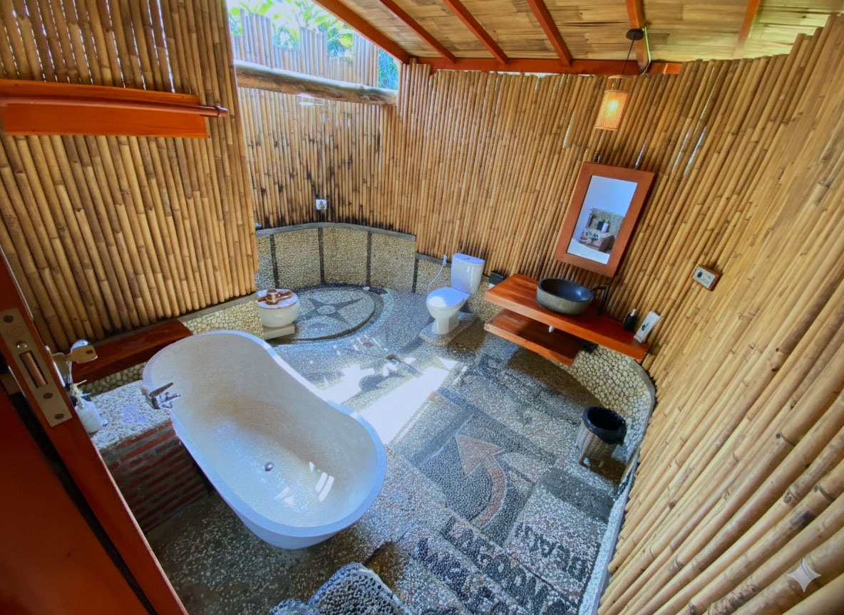 Indulge in elevated comfort and tranquility at the Degung Executive Suite Bungalow, an exclusive eco-retreat often described as a little Garden of Eden in the heart of Batukaras Village. Hidden among lush jungle trees and tropical gardens, this bungalow offers a refined escape for guests seeking privacy, serenity, and natural elegance.