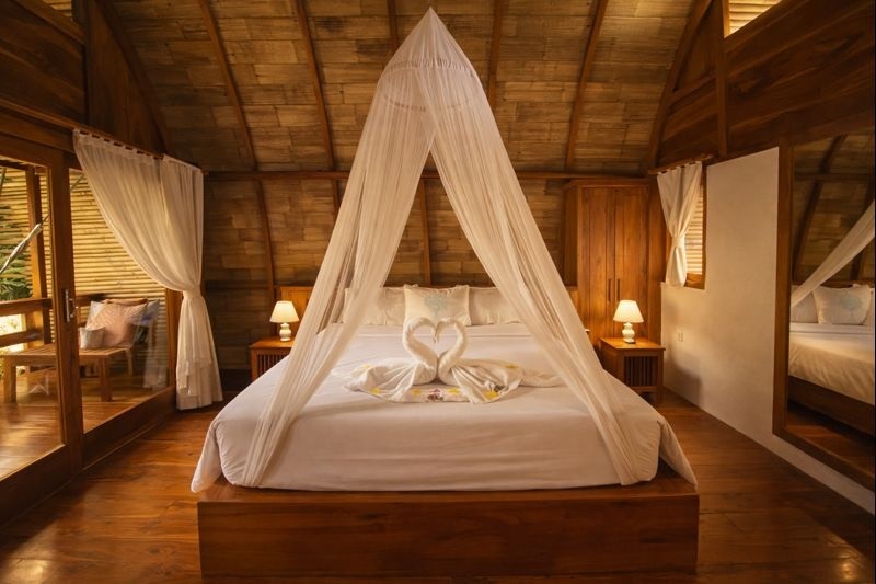 Designed to accommodate up to two guests, the Degung Room features a comfortable king-size bed, a private balcony for peaceful moments, and a private bathroom discreetly located at the back of the bungalow. Its spacious layout and thoughtful design make it an ideal choice for romantic getaways, honeymoon stays, or solo retreats for travelers who appreciate a higher level of comfort.
